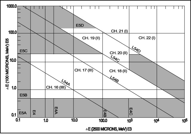 Figure 4. Channels in the 100-2500 micron combination for the coincidence condition (5 4 3).